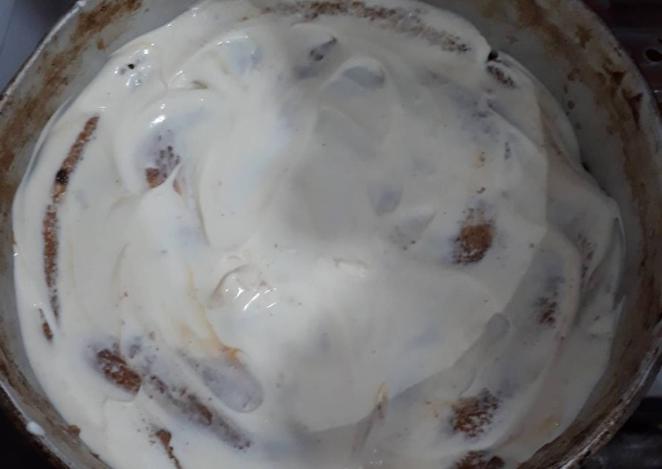 - Moje las vainillas en café con leche dulce las acomode en un recipiente arriba le puse dulce de leche volví a taparlas con vainillas mojadas de nuevo dulce y arriba crema! Y ala heladera :)