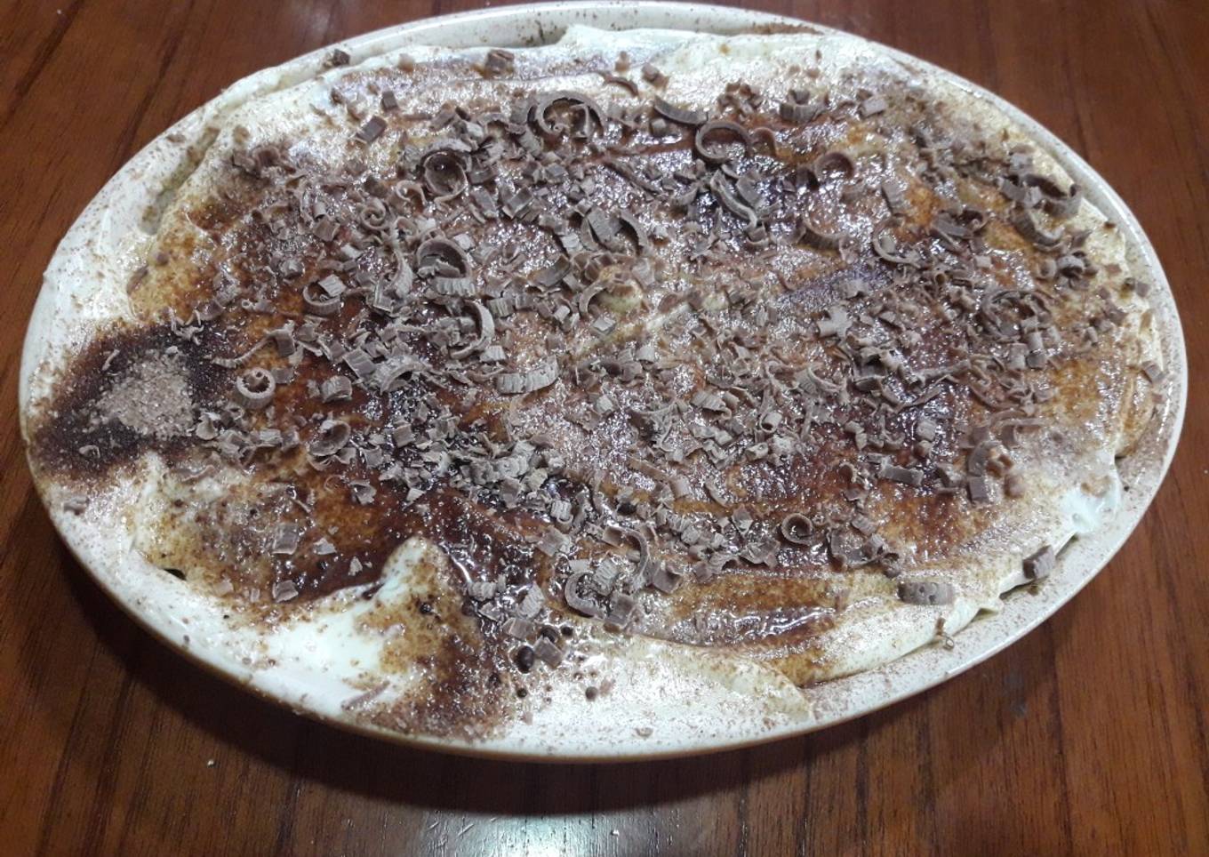 - Se arma, una base de vainilla empapada en la malta, se espolvorea con un poquito de canela y se pone una capa de la mezcla de queso y crema, se espolvorea con cacao en polvo y de vuelve a hacer la capa de vainillas. Así hasta lograr la altura deseada. Sobre la útima capa de queso se vuelve a espolvorear cacao y rallamos chocolate. Llevar a la heladera mínimo 2 horas.