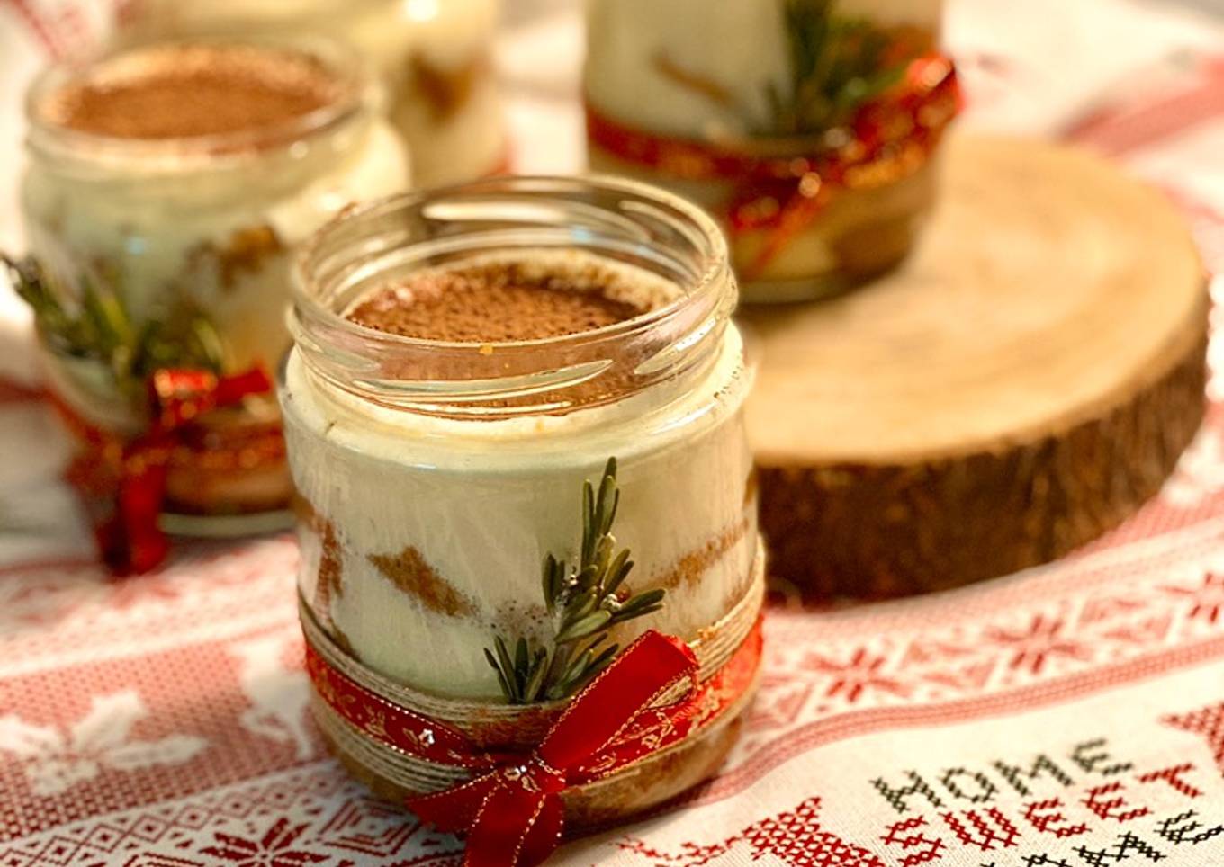 - Para montar cada vasito vamos cogiendo soletillas con café y licor y con cuidado ponemos sobre la base del tarrito hasta completarlo. Le ponemos seguidamente una capa de crema de mascarpone, otra de bizcocho y por último otra de crema. Llevamos a refrigerar al menos 24 horas antes de comer. En el momento de servir, espolvoreamos cacao en polvo por arriba y listos!