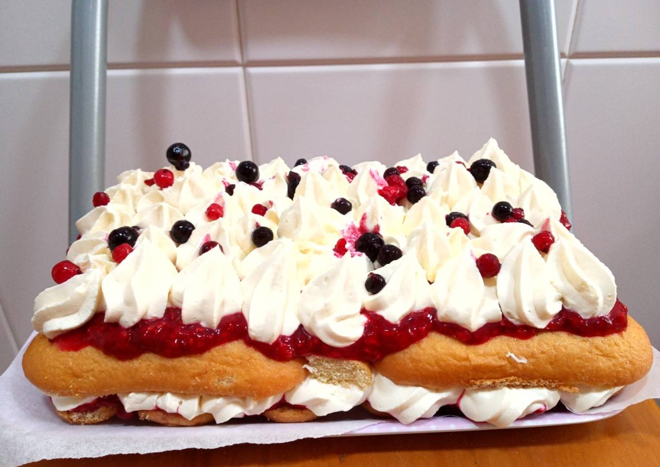- Repetimos colocando otra capa de bizcochitos, otra de frambuesas y otra de nata.