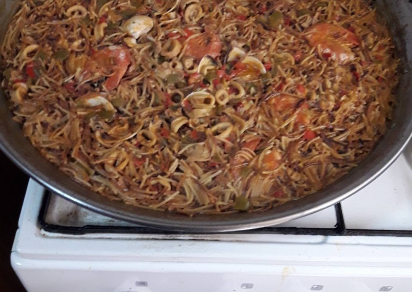 - En una paellera pondremos los fideos echaremos todo el sofrito con la fume, movemos todo y así hasta que veamos qué los fideos están en su punto y qué no quede mucho caldo.