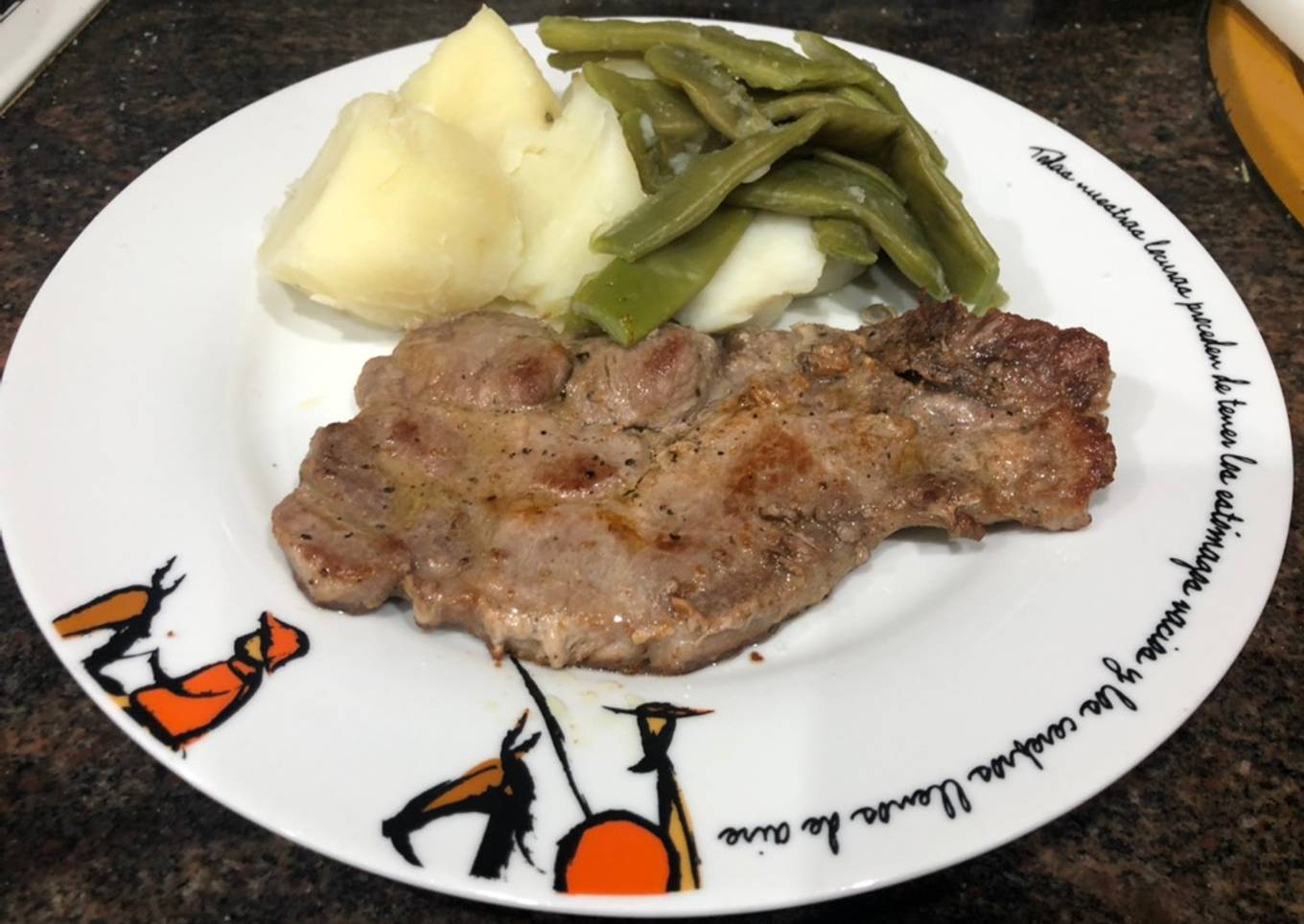 Judía verde con patata y chuletas de aguja y pechuga de pollo