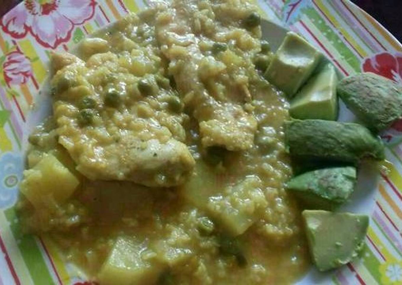 - Cuando el arroz este casi echo apagar el fuego y añadirlo a la patata y guisantes y dejar otros 10 minutos ir añadiendo agua si es necesario.