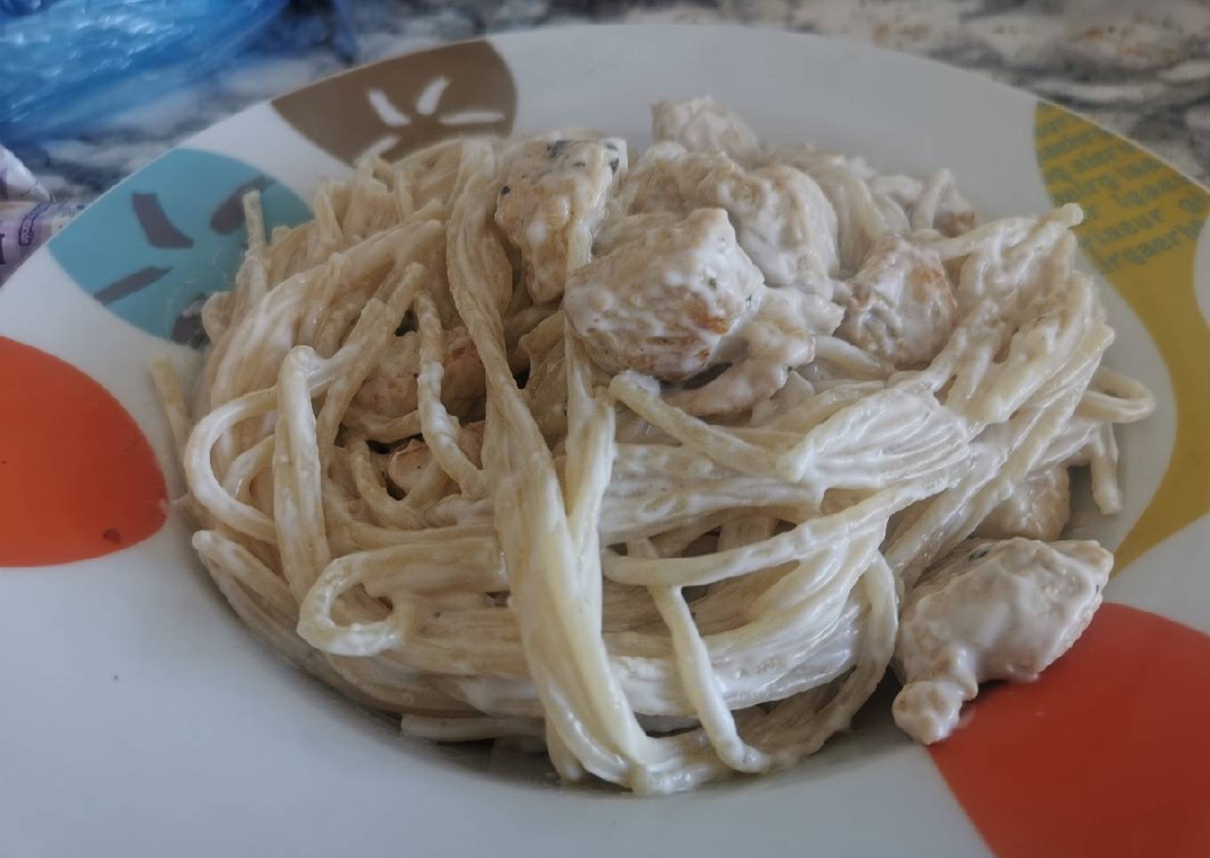 Espaguetis con pechuga y nata sin lactosa