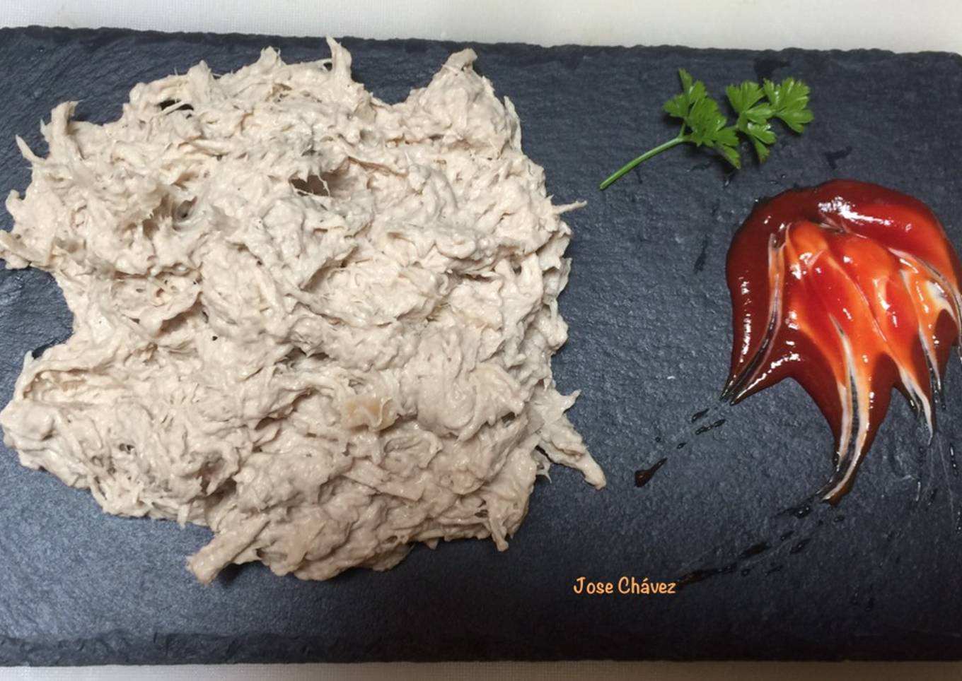 - Mezclamos la pechuga que ya tenemos desmenuzada con el alioli y listo!! Esta salsa es perfecta para pescados, carnes, arroces, verduras... para un bocata de pollo con tomate, lechuga, cebolleta... una delicia 😋😋