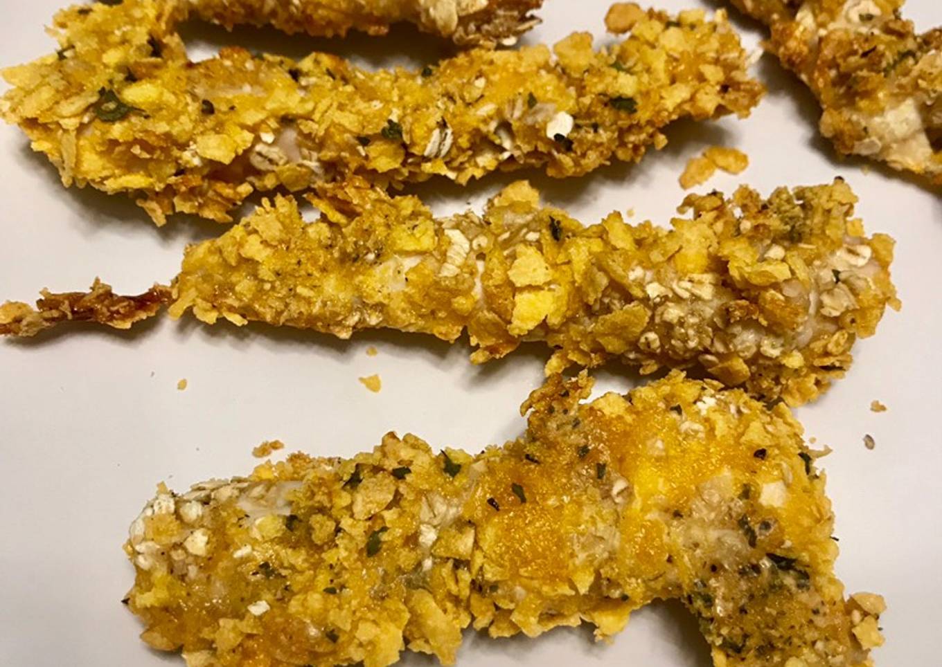 Instructions to make to make Tiras de pollo con copos de maíz y avena