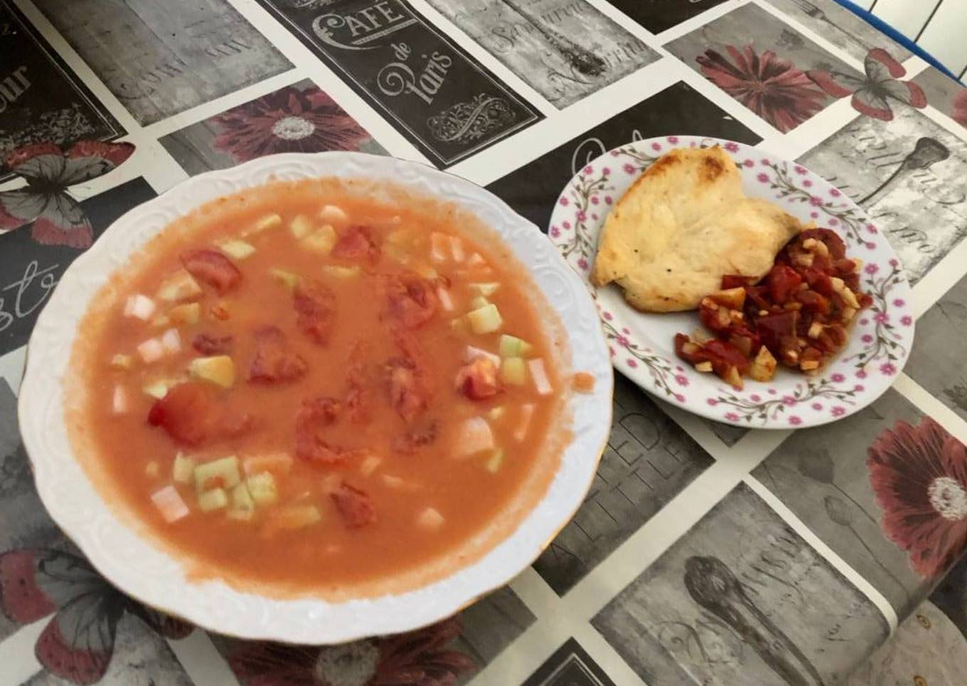 Hey everyone, it is me, Dave, welcome to our recipe site. Today, I'm gonna show you how to prepare a distinctive dish, Gazpacho andaluz y pechuga a la plancha con pimientos asados. One of my favorites food recipes. For mine, I'm gonna make it a little bit tasty. This is gonna smell and look delicious.