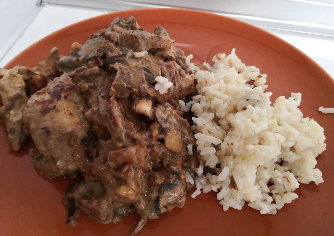 - Enplatamos las pechugas y añadimos a la misma sartén el arroz y removemos un par de minutos. Servimos junto a las pechugas y listo para comer. Que aproveche!