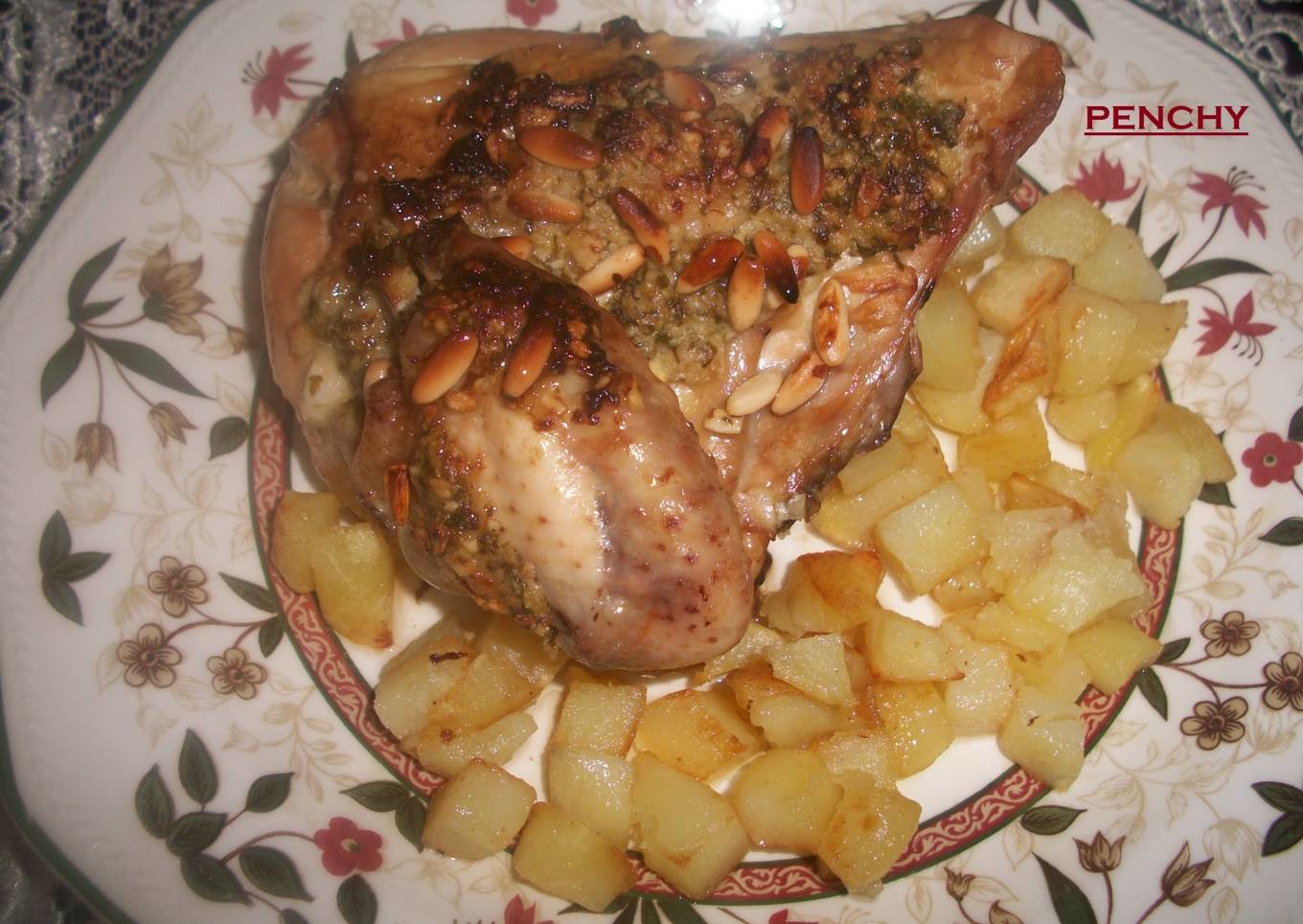 Una deliciosa pechuga al horno cubierta con una picada en la que van incorporados los piñones, superior, facil y barata.